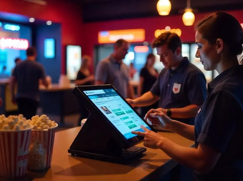 Mobile POS with tap-and-pay enables seamless in-seat ordering, enhancing convenience and boosting snack sales for a better cinema experience.